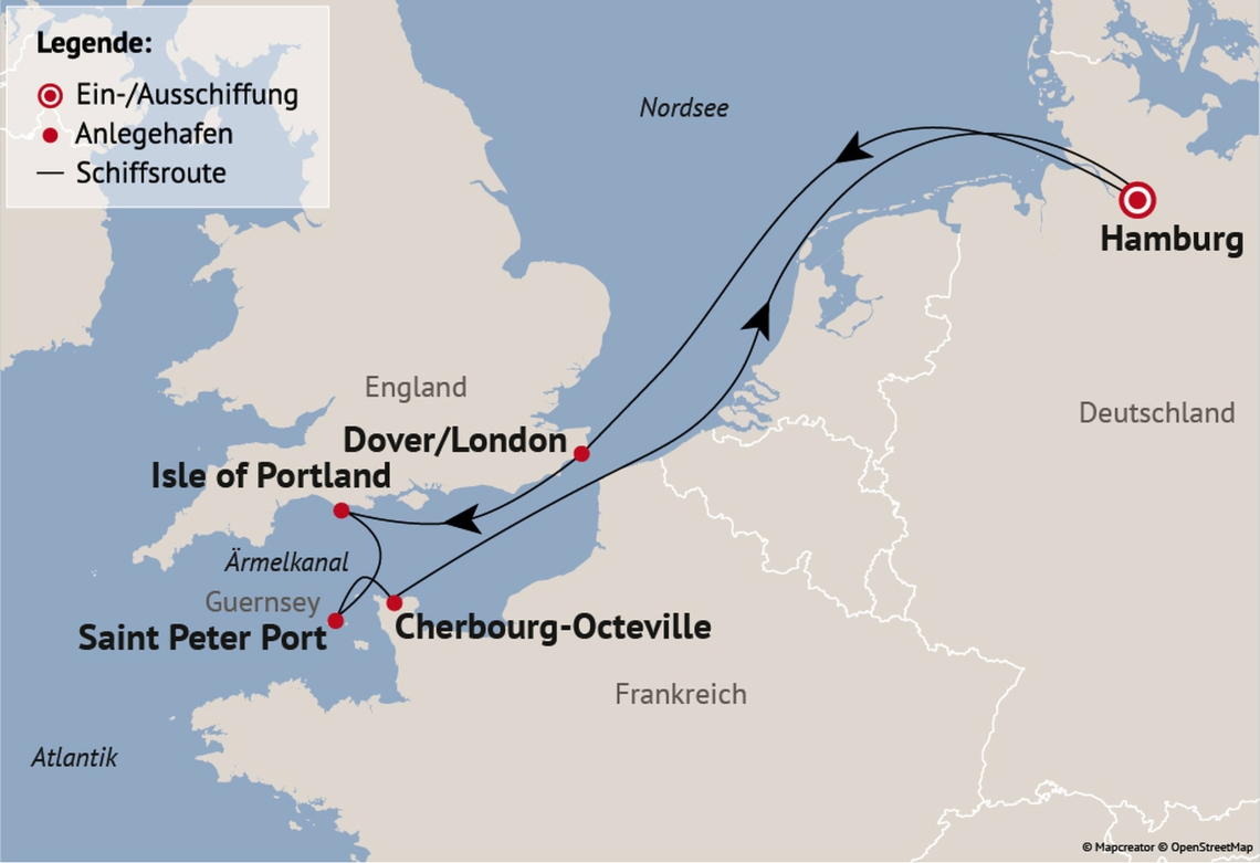 6 | Cherbourg-Octeville / Frankreich | 08:00 | 19:00 |