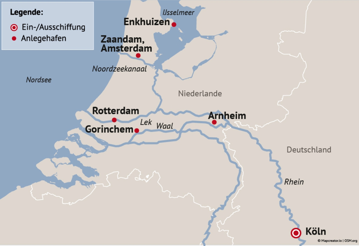 | 1 | Köln, Einschiffung Fahrt auf dem Niederrhein |