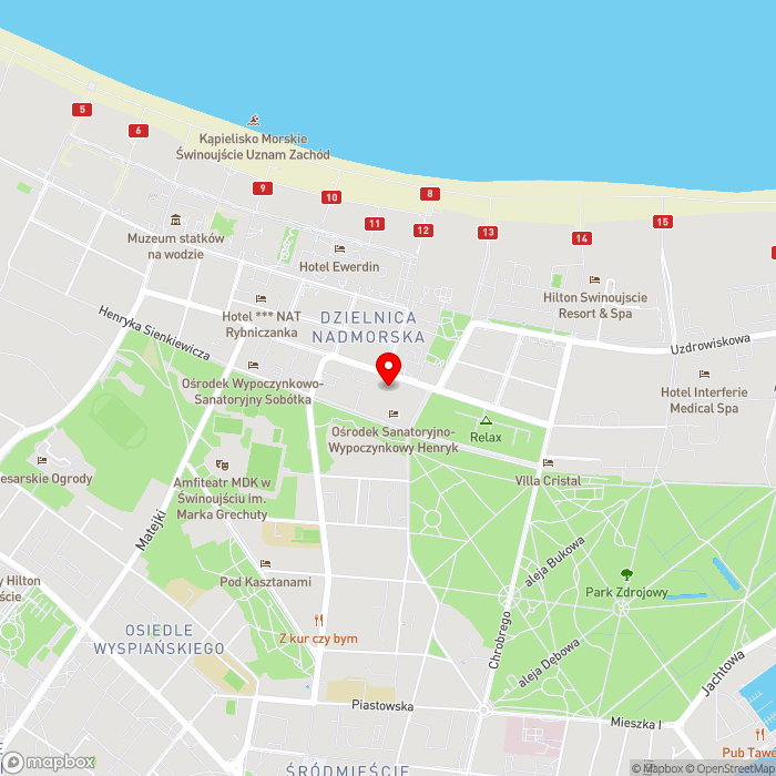 Ihr Resort begrüßt Sie zentral in Swinemünde, etwa 200 m vom weitläufigen Sandstrand entfernt. Den nächsten Bahnhof erreichen Sie in ca. 1,5 km, eine Bushaltestelle befindet sich direkt an der Straße vor Ihrem Resort. Das Stettiner Haff ist mit dem Auto rund 12 km entfernt. Der polnische Badeort Misdroy liegt ca. 22 km entfernt, das deutsche Seebad Ahlbeck und Heringsdorf in rund 6 – 9 km Entfernung.