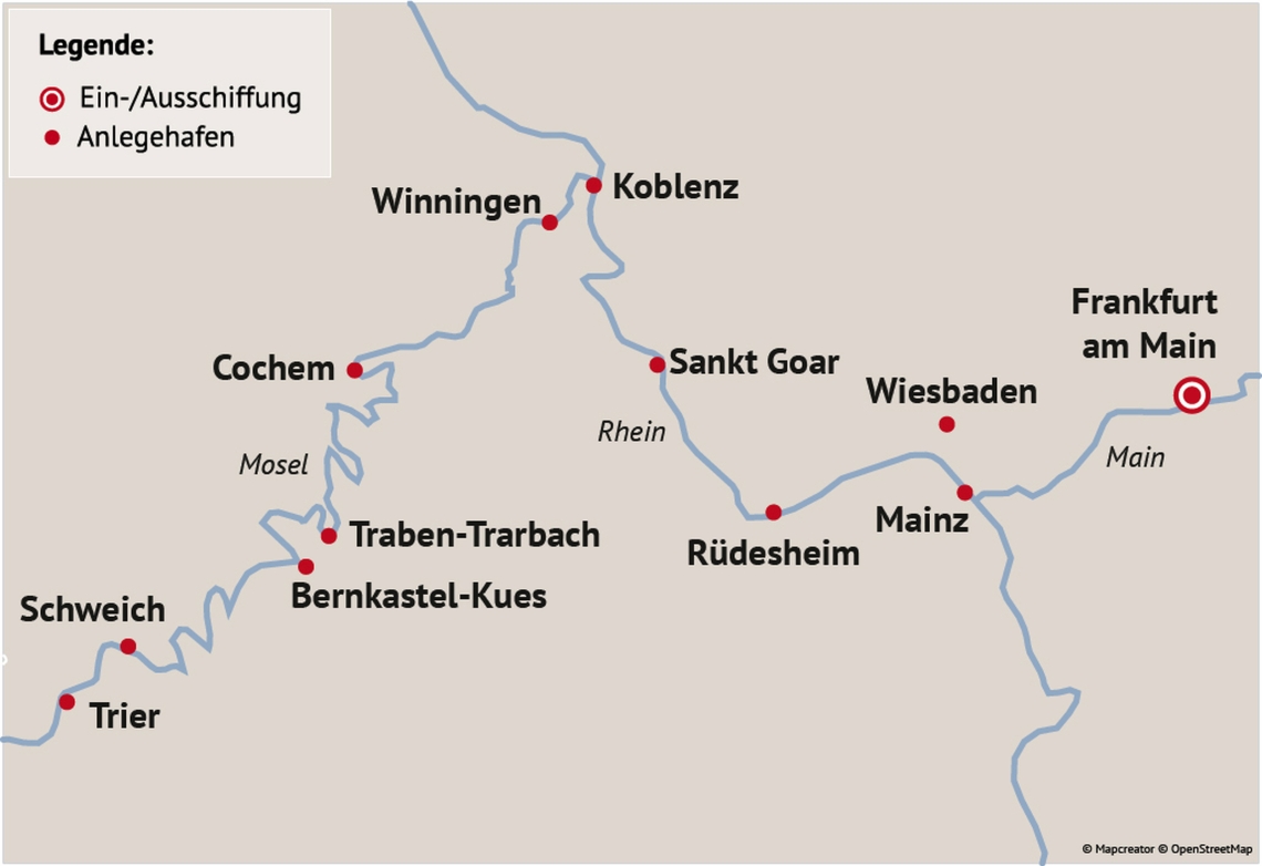| 8 | Koblenz St. Goar Loreley-Passage Rüdesheim |