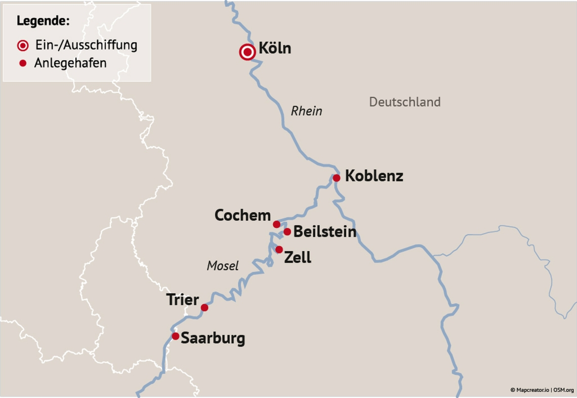 | 1 | Köln, Einschiffung ab ca. 14:00 Uhr | 15:30 | |