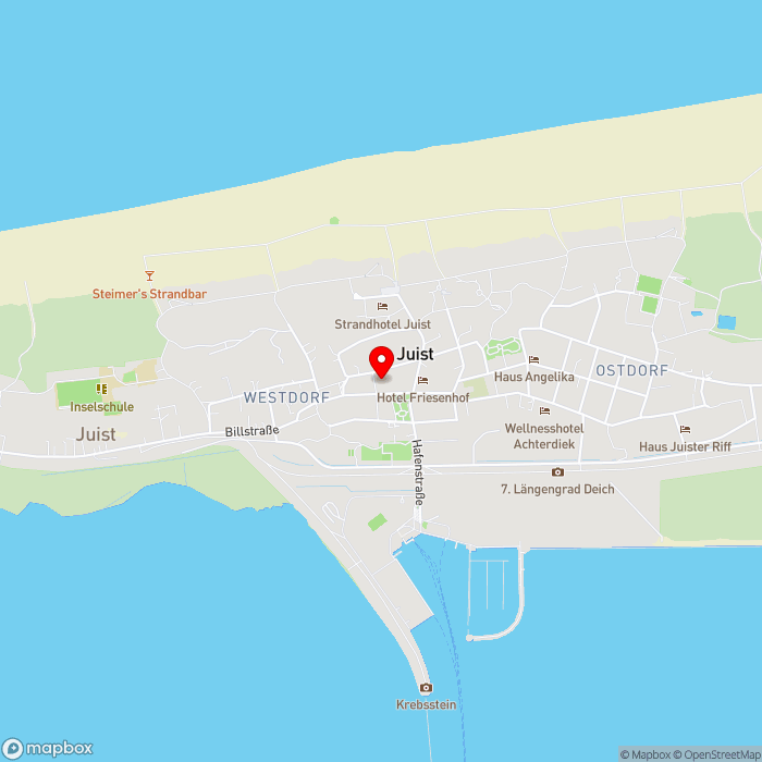 Das Hotel Atlantic Juist befindet sich im Ortszentrum von Juist. Die nächstgrößere Stadt ist Emden und liegt ca. 44 km entfernt. Den nächsten Bahnhof und die Bushaltestelle erreichen Sie nach etwa 12 km Entfernung. Nur ca. 200 m entfernt befinden sich der nächste Sandstrand und das Meer. In der Umgebung erwarten Sie sowohl Fahrradwege als auch Wandergebiete.