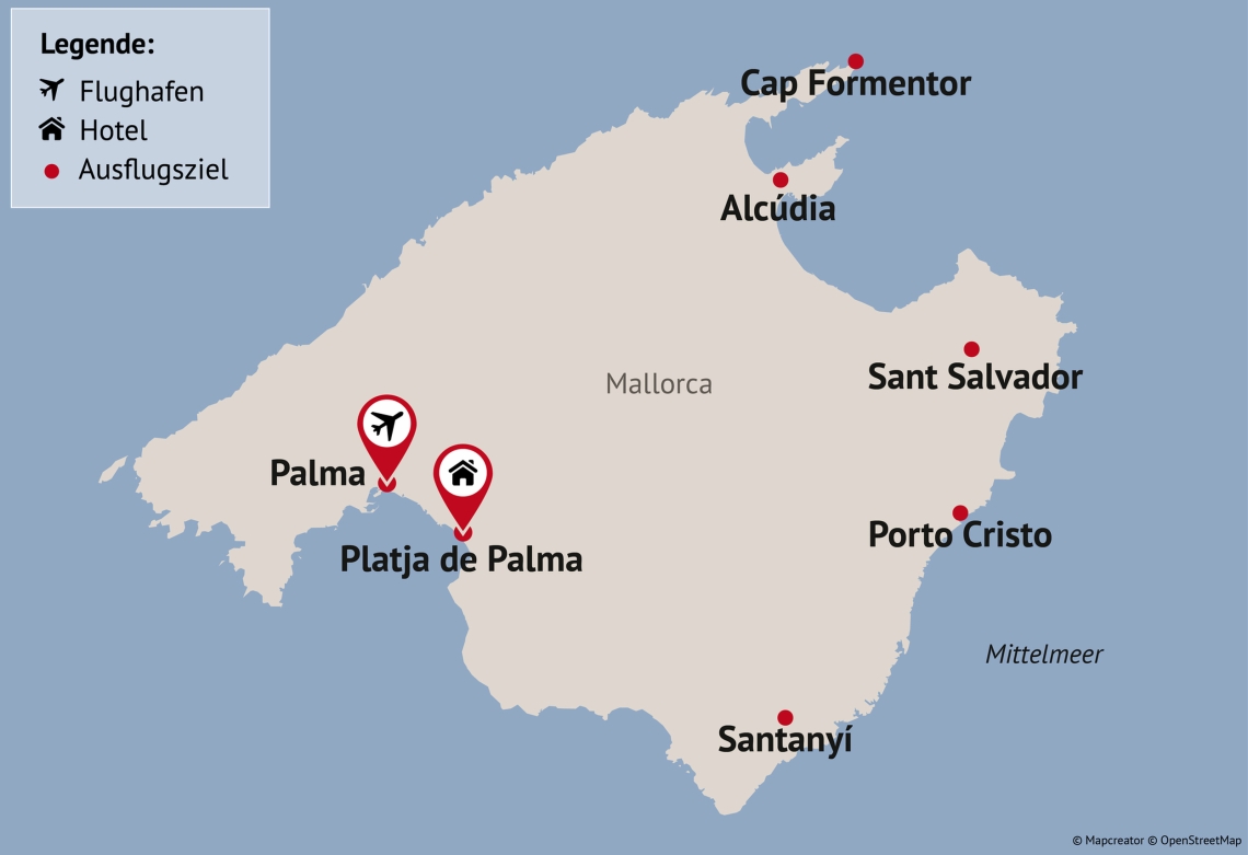 Zwischen Strand und Altstadt, Küstenstraße und Klosterberg, lebendiger Hauptstadt und ruhiger Bucht entfaltet sich eine Rundreise, die alle Facetten Mallorcas zeigt. Drei inkludierte Ganztagesausflüge führen in unterschiedliche Regionen der Insel und lassen Ihnen dennoch genügend Raum für Erholung und eigene Entdeckungen.