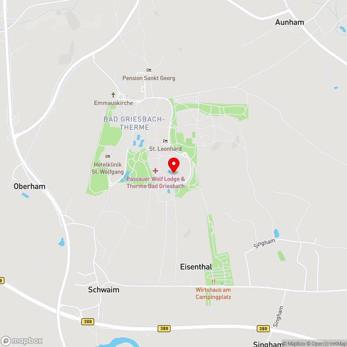 Das Hotel Glockenspiel liegt in der idyllischen Kurstadt Bad Griesbach, umgeben von sanften Hügeln und einer herrlichen Naturkulisse. Der charmante Ortskern ist nur etwa 3 km entfernt, eine Bushaltestelle erreichen Sie nach rund 500 m und der Bahnhof Karpfham liegt in etwa 7 km Entfernung. Die wunderschöne Stadt Passau mit ihren drei Flüssen befindet sich rund 40 km entfernt und lädt zu einem lohnenswerten Ausflug ein. Bad Griesbach selbst begeistert mit malerischen Radwegen und einer Vielzahl herrlicher Wanderpfade – ideal, um die reizvolle Landschaft in aller Ruhe zu entdecken.
