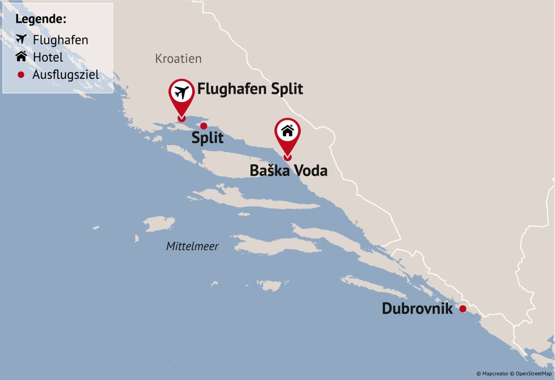 Direkt an der glitzernden Küste Kroatiens gelegen, öffnet das charmante Baška Voda das Tor zu einer Reise voller Kultur, Natur und Genuss. Hier, wo sich das kristallklare Meer an feine Kiesstrände schmiegt, erwartet Sie eine wohltuende Auszeit – gekrönt von einem Tagesausflug in das geschichtsträchtige Dubrovnik.