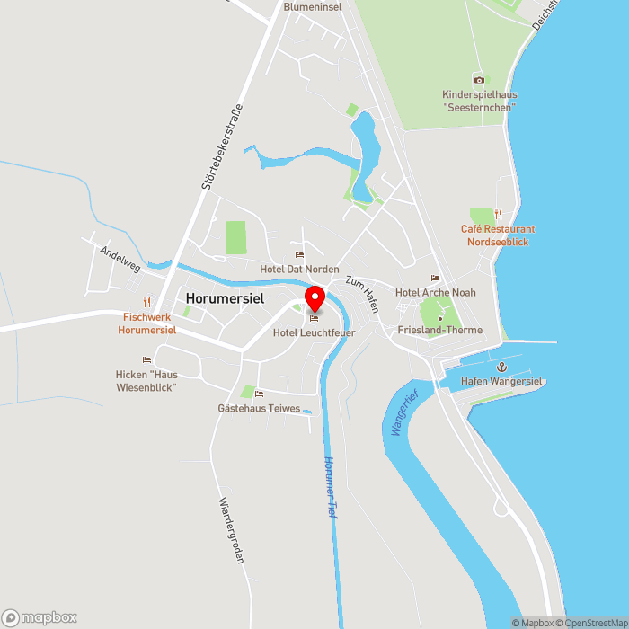 Das Hotel Leuchtfeuer überzeugt mit einer tollen, zentralen Lage im Herzen von Horumersiel, direkt an der Nordsee. Nur etwa 1 km trennen Sie vom nächsten Sandstrand und Bushaltestelle. Jever als nächstgrößere Stadt mit seinem Ortszentrum liegt ca. 25 km entfernt. Den nächsten Bahnhof finden Sie rund 30 km entfernt in Wilhelmshaven.