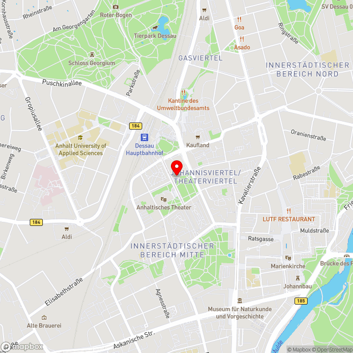 Ihr Hotel im Bauhaus-Stil liegt in Dessau-Roßlau gegenüber des berühmten Anhaltischen Theaters, nur ca. 500 m vom Ortszentrum entfernt. Es grenzt an einen Park, in dem Sie erholsame Stunden verbringen können. Eine Bushaltestelle erreichen Sie schon nach rund 100 m, den nächsten Bahnhof nach etwa 200 m. Die Bach-Stadt Köthen ist nur ungefähr 20 km entfernt, Leipzig etwa 45 km. Nach ca. 2 km erreichen Sie einen See, dessen Ufer zu ausgedehnten Spaziergängen einlädt.