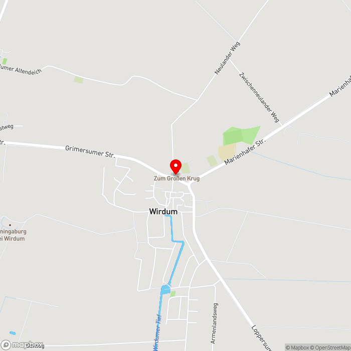 Das Hotel zum großen Krug liegt zentrumsnah in Wirdum in Ostfriesland. Bis zur nächstgrößeren Stadt Emden sind es ca. 16 km. Den nächsten Bahnhof Marienhafe erreichen Sie nach etwa 7 km. Die schöne Nordsee erreichen Sie nach knapp 14 km. Fahrradwege liegen in unmittelbarer Umgebung. Der See Großes Meer ist rund 11 km entfernt.
