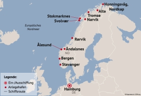 Das Hurtigruten Nordlicht-Versprechen gilt dann als erfüllt, wenn während der Seereise mindestens einmal ein Nordlicht auftritt und über Lautsprecher an Bord die Sichtung ausgerufen wurde, unabhängig davon, zu welcher Tages- oder Nachtzeit dies erfolgt ist, und unabhängig davon, wie kurz oder lang das Nordlicht zu sehen war. Die Bestellung des Nordlicht-Weckrufs auf die Kabine wird daher empfohlen. Im Falle, dass kein Nordlicht gesichtet wurde, muss die Buchung der erneuten Reise proaktiv seitens des Kunden und innerhalb von 28 Tagen nach Rückkehr der ersten Reise erfolgen. Nur anwendbar auf die klassische Postschiffroute (6- oder 7-Tage-Reise) mit Abfahrtstermin Oktober bis März (vorbehaltlich Verfügbarkeit). Sollte das spektakuläre Nordlicht während Ihrer klassischen Postschiffreise in Norwegen nicht erscheinen, wird Ihnen Hurtigruten gratis eine 6-tägige Reise südwärts oder eine 7-tägige Reise nordwärts anbieten. Die Kosten des Seereiseanteils inklusive Übernachtung und Vollpension übernimmt Hurtigruten. Die Unterbringung erfolgt in einer Innenkabine, die Wahl der Kabinennummer übernimmt Hurtigruten. Nicht übertragbar. Keine Barauszahlung möglich. Exklusive An- und Abreisekosten sowie sonstiger Nebenkosten wie z. B. für Landausflüge, weitere Mahlzeiten sowie Getränke an Bord.