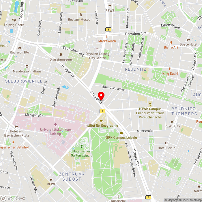 Ihr Hotel befindet sich ca. 2,6 km vom Leipziger Zentrum entfernt. Eine Bushaltestelle erreichen Sie schon nach rund 500 Metern vom Hotel. Bis zum Hauptbahnhof Leipzig sind es ca. 2 km.