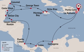 | 4 | Transfer zum Hafen von La Romana und Einschiffung | 22:00 | |