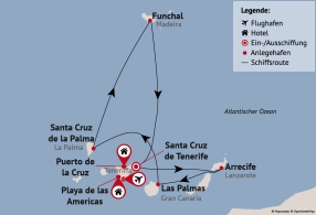 | 3 | Transfer zum Hafen von Santa Cruz de Tenerife und Einschiffung | 22:30 | |