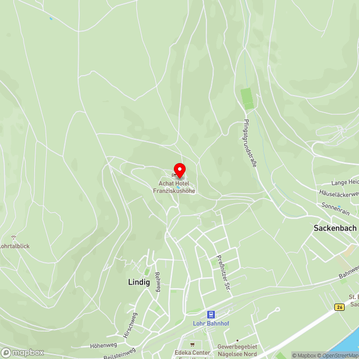 Ihr Hotel befindet sich in Lohr am Main, einer charmanten Stadt im bayerischen Unterfranken, die malerisch am Main gelegen ist. Es ist nur rund 1,8 km vom historischen Stadtzentrum entfernt. In gleicher Entfernung finden Sie auch den nächstgelegenen Bahnhof. Eine Bushaltestelle erreichen Sie bereits nach ca. 800 m.