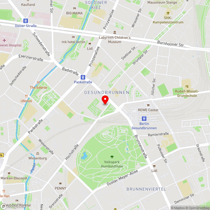 Das Moxy Berlin Humboldthain Park befindet sich zentral in Berlin, direkt am Humboldhain Park. Dank des nahegelegenen Bahnhofs Gesundbrunnen, den Sie nach ca. 300 m erreichen, gelangen Sie in Windeseile zu Berlins größten Sehenswürdigkeiten wie dem Brandenburger Tor, dem Berliner Dom oder auch dem Alexanderplatz, welche alle etwa 5 km entfernt liegen.