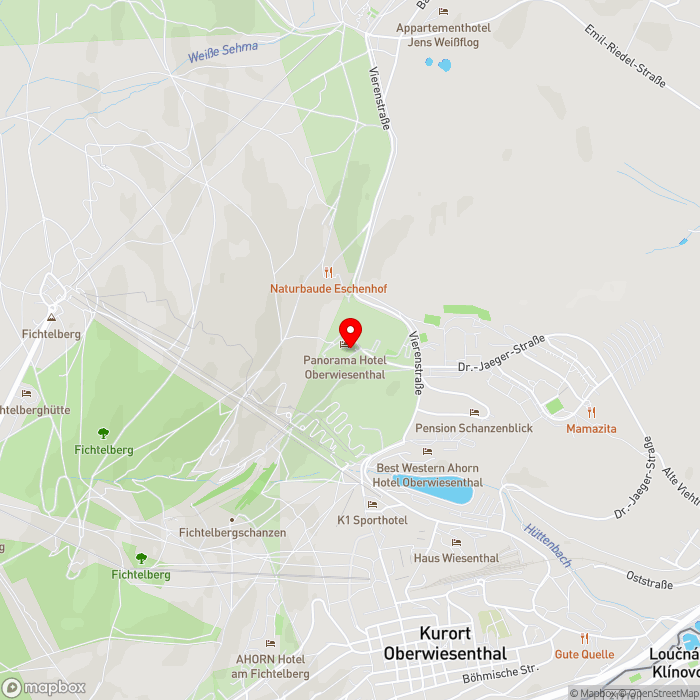 Das Panorama Hotel Oberwiesenthal empfängt Sie in ruhiger Hanglage am Fichtelberg und bietet einen schönen Blick über die Landschaft des Erzgebirges. Das Ortszentrum von Oberwiesenthal und die nächstgelegebe Bushaltestelle erreichen Sie in rund 2 km. Die Stadt Chemnitz erreichen Sie nach etwa 60 km; der nächste Bahnhof befindet sich ebenfalls in der Stadt. Besonders angenehm ist die Nähe zum Skigebiet. Bereits nach rund 500 m stehen Sie an den ersten Liften und Pisten. Auch in den schneefreien Monaten beginnen viele Wanderwege in unmittelbarer Nähe und ermöglichen abwechslungsreiche Ausflüge in die Natur.