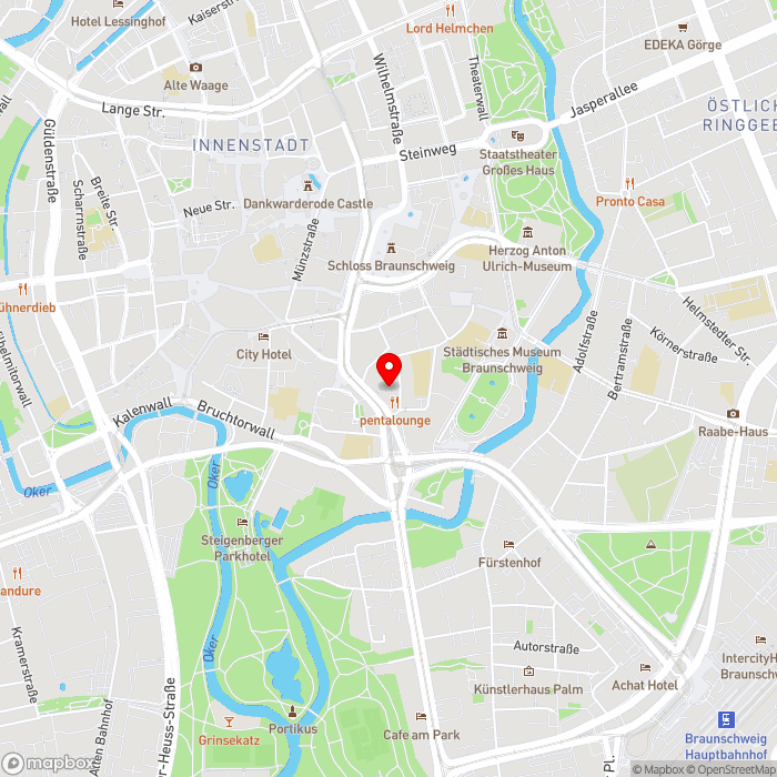 Das Pentahotel Braunschweig ist ein moderner Bau mitten in der Altstadt Braunschweigs. In der näheren Umgebung laden zahlreiche Cafés, Restaurants und Geschäfte zum Verweilen ein, während die Innenstadt (ca. 850 m) mit ihren vielfältigen Einkaufs- und Freizeitmöglichkeiten bequem erreichbar ist. Zu den wichtigsten Sehenswürdigkeiten zählen der imposante Braunschweiger Dom (ca. 750 m) sowie der Burgplatz mit dem berühmten Löwen (ca. 800 m). Eine Straßenbahnhaltestelle befindet sich in unmittelbarer Nähe und auch der Hauptbahnhof Braunschweig (ca. 2 km) ist gut erreichbar.