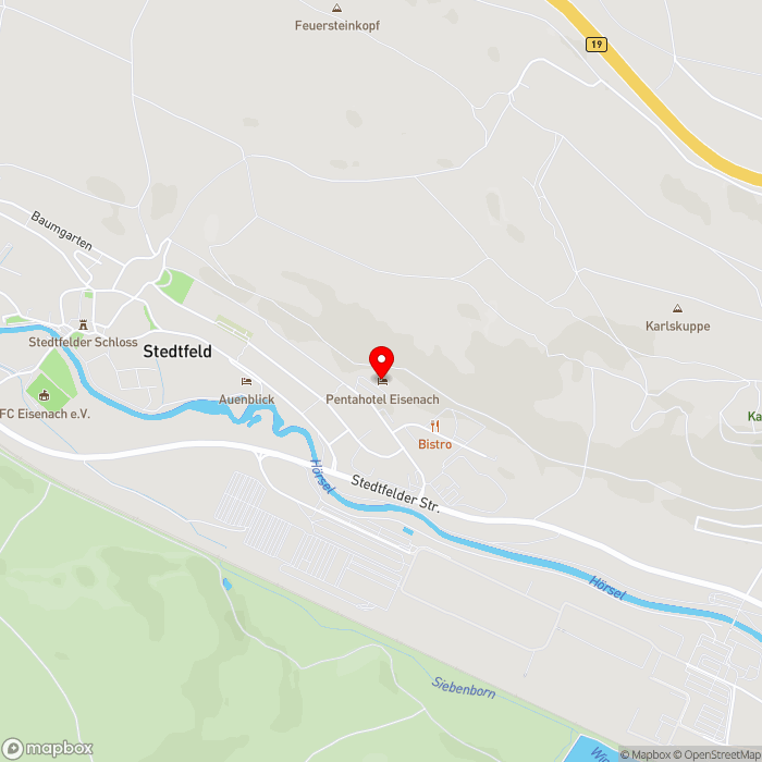 Das modern gestaltete Pentahotel Eisenach liegt etwa 4 km vom Stadtzentrum Eisenach entfernt. Nach ca. 200 m erreichen Sie die Bushaltestelle. Die ehemalige Residenzstadt Gotha erreichen Sie nach ca. 53 km.