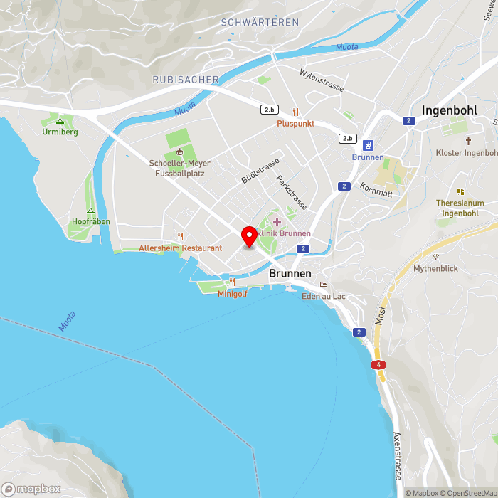 Ihr Hotel erwartet Sie im Zentrum der malerischen Schweizer Stadt Brunnen und bildet den perfekten Ausgangspunkt für Besuche in den Kulturstätten der Region oder für Ausflüge in die traumhafte Natur. Die Stadt liegt in einer abwechslungsreichen Berg- und Seenlandschaft und wird Sie verzaubern. Den Vierwaldstättersee erreichen Sie bereits nach wenigen Gehminuten. Die nächste Bushaltestelle liegt ca. 110 m entfernt, der Bahnhof Brunnen rund 850 m und das Fährterminal etwa 300 m. Ein Strandbad sowie ein Hallenbad sind in etwa 5 Gehminuten zu erreichen. Luzern liegt ca. 40 km entfernt.