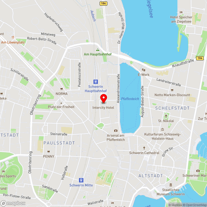Das Intercity Hotel Schwerin ist ein idealer Ausgangspunkt für Kulturtrips und Erkundungen in und um Schwerin. Es liegt direkt am Hauptbahnhof und garantiert kurze Wege in die Innenstadt mit ihren Shopping-, Sport- und Unterhaltungseinrichtungen. Alle wichtigen Verkehrsanbindungen finden Sie in unmittelbarer Nähe. Zum Hauptbahnhof sind es ca. 200 m, zur nächsten Bushaltestelle nur rund 100 m. Wismar erreichen Sie nach etwa 30 km. Der Schweriner See liegt etwa 1 km von Ihrem Hotel entfernt, die Ostsee erreichen Sie nach rund 30 km.