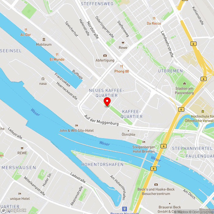 Ihr Hotel befindet sich im Westen des Bremer Stadtzentrums, rund 1,5 km vom Stadtkern entfernt. Einkaufsmöglichkeiten erreichen Sie nach ca. 350 m und eine Bushaltestelle nach etwa 100 m. Der nächste Bahnhof liegt in rund 2 km Entfernung. Die Neue Promenade an der Weser erreichen Sie fußläufig bereits nach ca. 700 m.