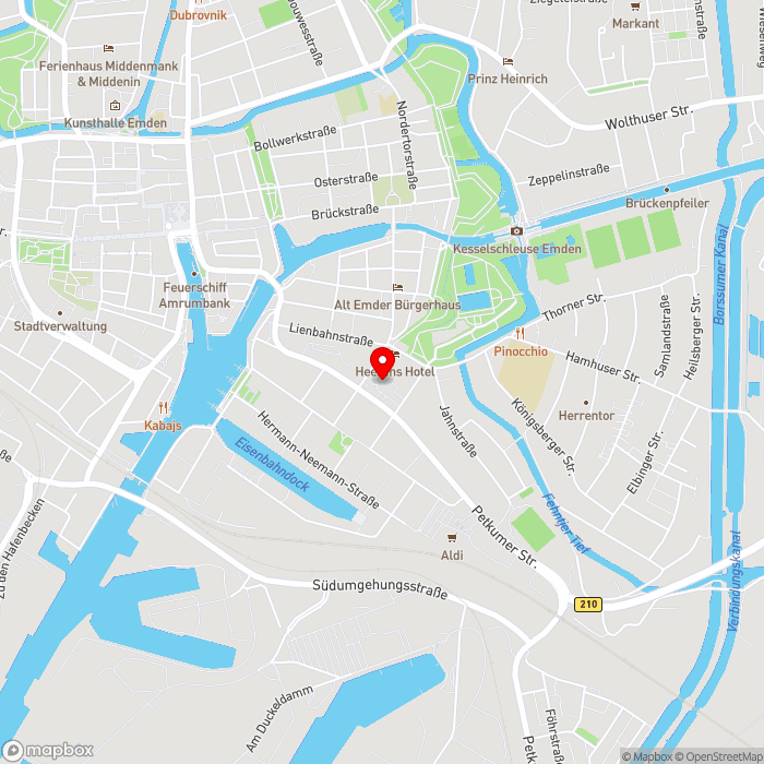 Das Upstalsboom Parkhotel in Emden überzeugt durch seine angenehm zentrale Lage. In nur etwa 1 km erreichen Sie bequem das Ortszentrum von Emden mit seinen Geschäften, Cafés und kulturellen Angeboten. Der Bahnhof Emden liegt rund 1,8 km entfernt, während sich die nächste Bushaltestelle nur etwa 50 m vom Hotel befindet. So sind Sie jederzeit flexibel und mobil unterwegs. Auch das Meer ist nicht weit entfernt, denn der beliebte Strand von Norddeich liegt nur etwa 37 km entfernt und lädt zu erholsamen Stunden an der Nordsee ein.