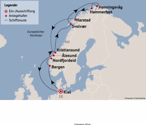 | 8 | Honningsvåg / Norwegen | 07:30 | 22:00 |