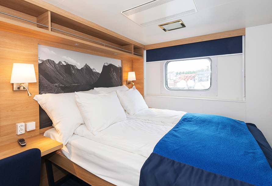 Außenkabinen Superior erwarten Sie mit einem Doppelbett oder getrennten Betten (davon ein Bettsofa) sowie Wasserkocher.