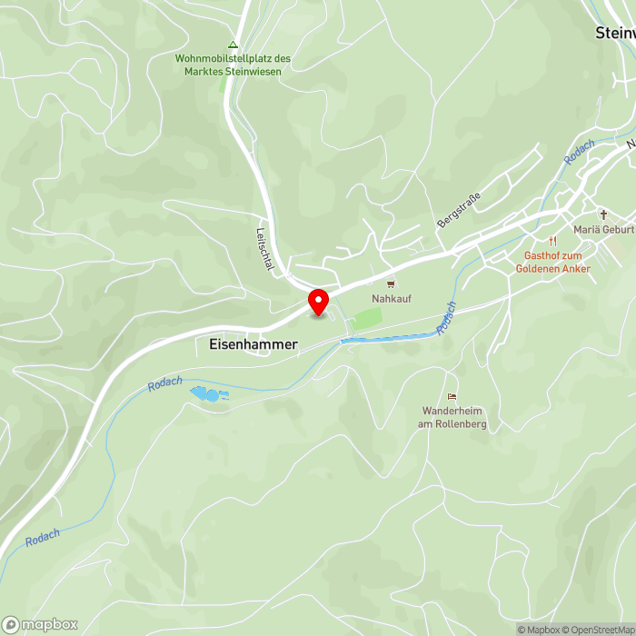 Am grünen Ortsrand von Steinwiesen befindet sich Ihr Hotel. Steinwiesen ist eine zauberhafte Marktgemeinde und staatlich anerkannter Erholungsort mitten im Naturpark Frankenwald, der ersten „Qualitätsregion Wunderbares Deutschland“. Das Zentrum erreichen Sie nach ca. 700 m. Die nächstgrößeren Städte Kronach (ca. 14 km), Kulmbach (ca. 29 km) und Hof an der Saale (ca. 38 km) sind von hier aus bequem zu erreichen.