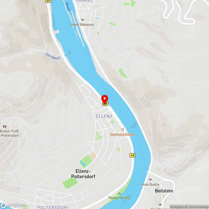 Das Moselstern Hotel Weinhaus Fuhrmannn erwartet Sie direkt am Moselufer im Weinort Ellenz-Poltersdorf. Die Stadt Cochem erreichen Sie nach ca. 10 km, Koblenz nach ca. 50 km.