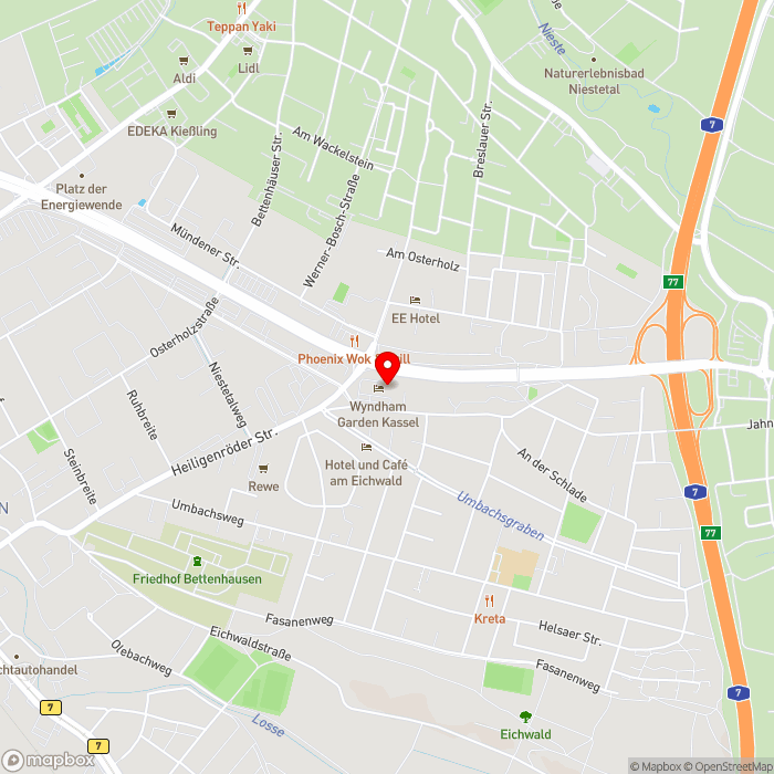 Das Wyndham Garden Kassel befindet sich zentral in Kassel. Aufgrund der verkehrsgünstigen Lage ist das Hotel der ideale Ausgangspunkt für Unternehmungen. Die Innenstadt von Kassel mit ihren Museen und dem Staatspark Aue erreichen Sie nach ca. 6 km.